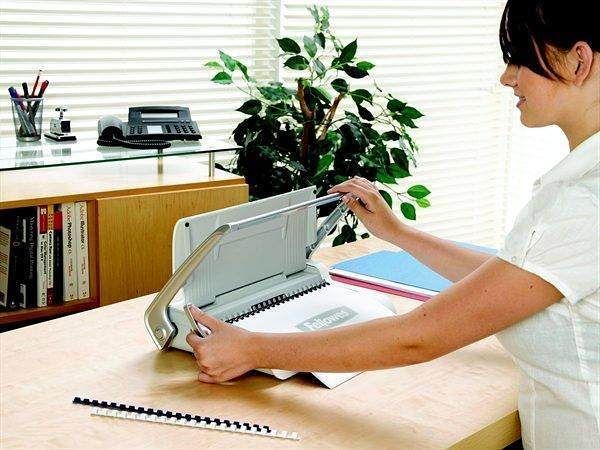 Děrování až do 12 listů papíru formátu A4 (80g) současně, může vázat dokumenty s kapacitou vazby až 150 listů papíru, max. průměr hřbetu 19mm.