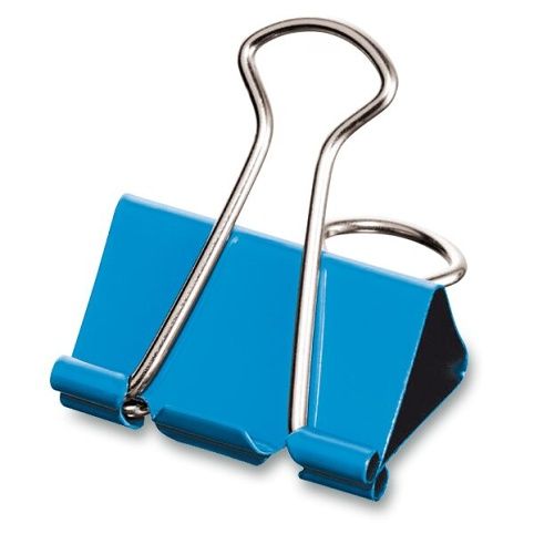 Kancelářské kovové klipy (binder clips), barevné. Velikost 15 mm, 12 ks. Mix barev.