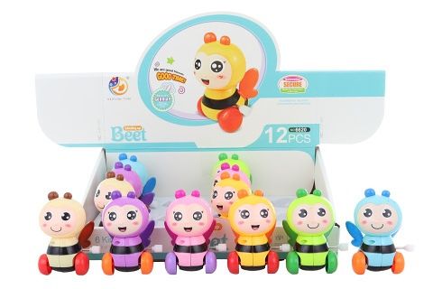 Natahovací včelička o velikosti cca 8,5 x 5 x 6 cm. Po natažení včelička jede a hýbe hlavou a křídly. Věk 3+