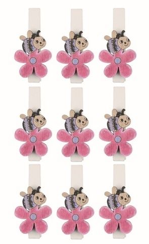 Včelka na kytce fialová dřevěná 2 x 2,5 x 0,3 cm na kolíčku, 9 ks v sáčku