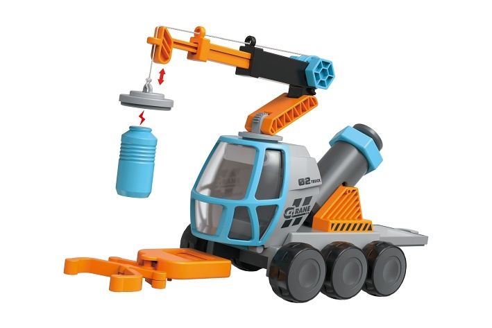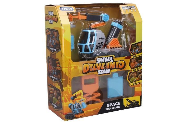 Vědecká sada jeřáb 4v1. Rozměry jeřábu 20x11x18 cm. Teleskopické rameno s magnetem, mikroskop, prodloužená ruka, úložný prostor. 3xAG10 baterie nejsou součástí. Tlačítko v zadní části jeřábu.