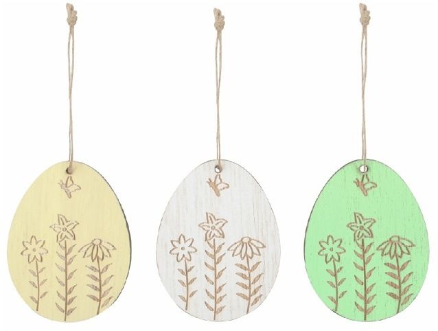 Vejce dřevěné 5 x 7 x 0,5 cm na zavěšení, 6 ks v krabičce
