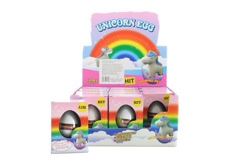 Vejce jednorožec, které vložíte do vody a po 12-24 hod vajíčko popraská. Po 48 hod se z vajíčka vyklube figurka jednorožce. Rozměry balení cca 7,5 x 10,5 x 5,5 cm. Žertovný předmět.