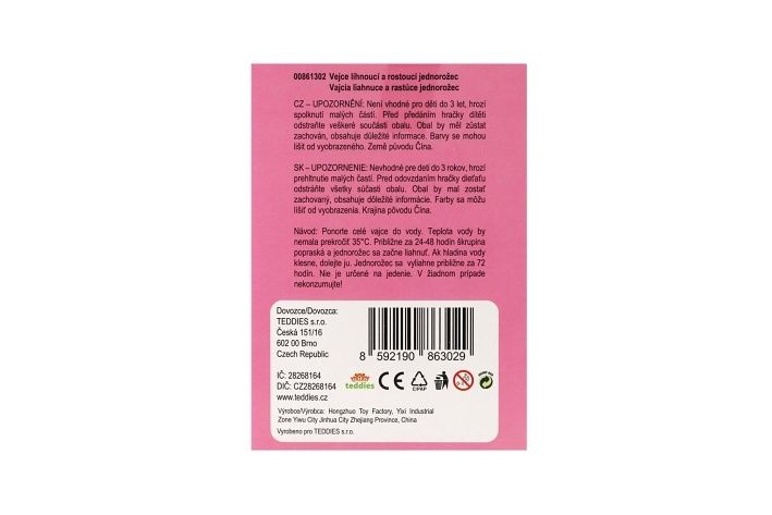 Ve vajíčku je ukryto překvapení ve formě jednorožce. Aby se ale z vajíčka vyklubal, stačí ponořit vajíčko do misky s vlažnou vodou. Přibližně za 24 - 48 hodin skořápka popraská a jednorožec se začne klubat. Děti tak mohou pozorovat, jak se jednorožec líhne z vajíčka. Jak bude vypadat se dozvědí za cca 72 hodin. Po vylíhnutí jednorožec zůstane v plné velikosti a nezmenšuje se.