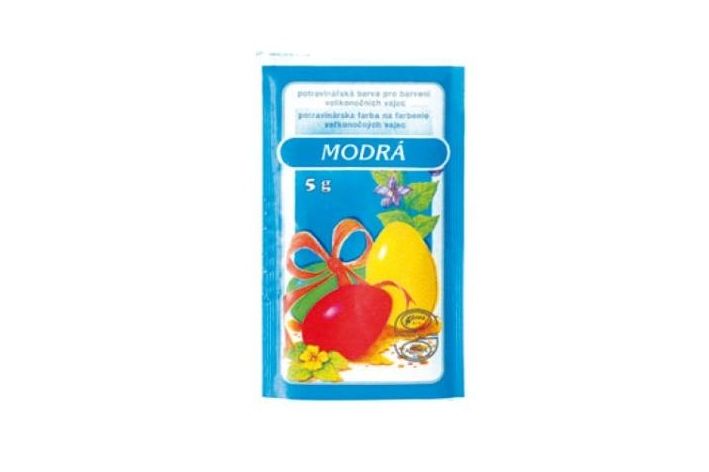 Jeden sáček obsahuje 5 g potravinářské barvy k obarvení velikonočních vajíček na modro.