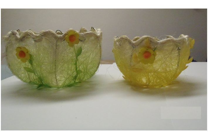 Velikonoční dekorace sada dvou košíčků STEJNÉ BARVY. Jsou ve variantě zelený a žlutý. Průměr většího košíčku je 14cm a menšího 11cm. Barevnou variantu uveďte prosím do poznámky.