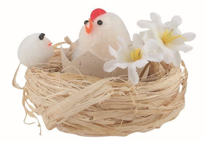 Velikonoční kuřátko ve skořápce v hnízdě, béžové, 7 × 5 × 7 cm, 2 ks Roztomilá velikonoční dekorace s motivem kuřátka ve skořápce umístěné v hnízdě je stylovým doplňkem pro sezónní a jarní výzdobu interiéru. Béžové provedení dodává dekoraci přírodní a příjemný vzhled, který skvěle ladí s dalšími dekorativními prvky. Díky hravému designu přináší dekorace do domácnosti veselou a svěží atmosféru, ať už ji umístíte na stůl, parapet nebo jako součást větší aranžmá. Vlastnosti: Rozměry: 7 × 5 × 7 cm Balení obsahuje: 2 ks kuřátek ve skořápce v hnízdě Materiál: textil, plast a přírodní materiály Využití: dekorace na velikonoční aranžmá, jarní výzdobu, stoly nebo kreativní projekty Design: veselý jarní motiv s přírodním akcentem vhodný pro sezónní dekorace