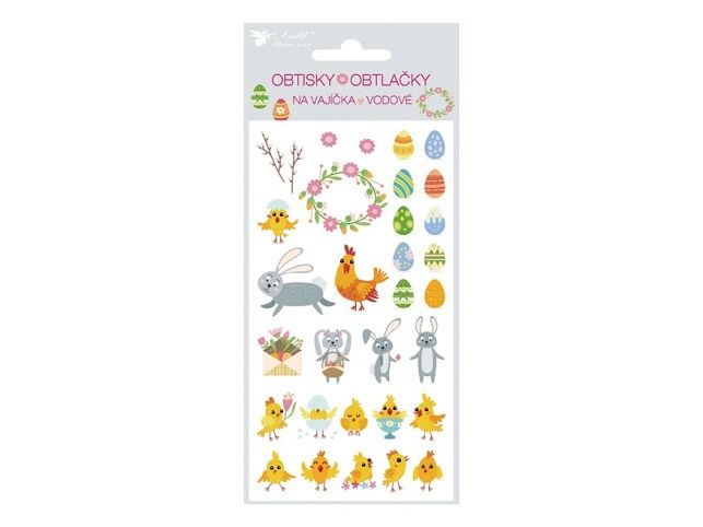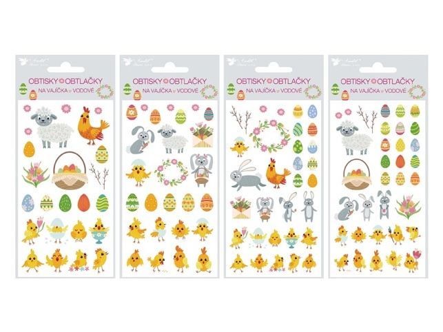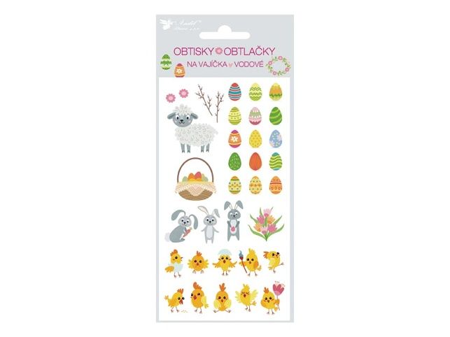 Obtisky na velikonoční vajíčka s klasickými velikonočními motivy jsou krásnou a tradiční technologií zdobení velikonočních vajíček. NÁVOD: Obtisk ponořte na několik vteřin do teplé vody, vyjměte a položte tiskem nahoru na hladkou desku. Jakmile jde obtiskem posouvat, přiložte papír s obtiskem na vařené vajíčko (i obarvené) obrázkem nahoru, papír zpod obtisku vytáhněte a hlazením hladkoou stranou mokrého papíru vymáčkněte vodu a vzduchové bubliny. Pro docílení lesku potřete vajíčka tukem. Cena je za 1 ks aršíku.