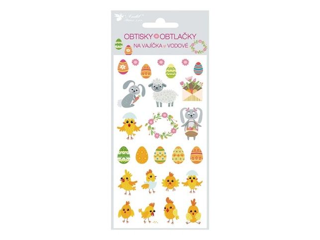 Obtisky na velikonoční vajíčka s klasickými velikonočními motivy jsou krásnou a tradiční technologií zdobení velikonočních vajíček. NÁVOD: Obtisk ponořte na několik vteřin do teplé vody, vyjměte a položte tiskem nahoru na hladkou desku. Jakmile jde obtiskem posouvat, přiložte papír s obtiskem na vařené vajíčko (i obarvené) obrázkem nahoru, papír zpod obtisku vytáhněte a hlazením hladkoou stranou mokrého papíru vymáčkněte vodu a vzduchové bubliny. Pro docílení lesku potřete vajíčka tukem. Cena je za 1 ks aršíku.