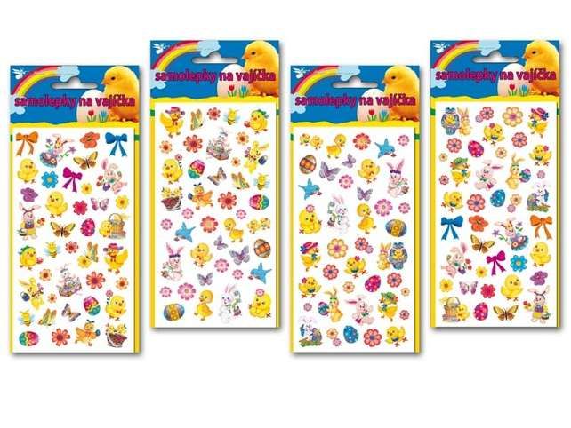 Samolepky na velikonoční vajíčka s tradiční motivy. Najdete zde obrázky beránků, kuřátek, zajíčků, a dalších symbolů velikonoc a jara. Jak nalepit samolepku na vejce: 1. K dekorování použijte čisté, odmaštěné a suché vejce. 2. Odstraňte krycí papír. Opatrně sloupněte vybraný obrázek z podkladové fólie. 3. Lepící stranou přiložte obrázek na vejce a prstem uhlaďte. Uvedená cena je za 1 aršík.