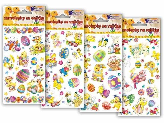 Samolepky na velikonoční vajíčka s tradiční motivy beránků, kuřátek, zajíčků, a dalších symbolů velikonoc a jara. NÁVOD: 1. K dekorování použijte čisté, odmaštěné a suché vejce. 2. Odstraňte krycí papír. Opatrně sloupněte vybraný obrázek z podkladové fólie. 3. Lepící stranou přiložte obrázek na vejce a prstem uhlaďte. Cena za 1 aršík.