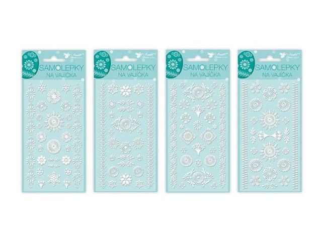 Bílé gelové samolepky na vajíčka s velikonočními motivy. Jak nalepit samolepku na vejce: 1. Použijte čisté odmaštěné a suché vejce. 2. Pomocí krycí fólie opatrně obrázek přitlačte a prstem lehce přeškrábejte přes krycí fólii. 3. Jakmile se obrázek uvolní od fólie, opatrně ji odstraňte a obrázek uhlaďte. Uvedená cena je za 1 aršík.