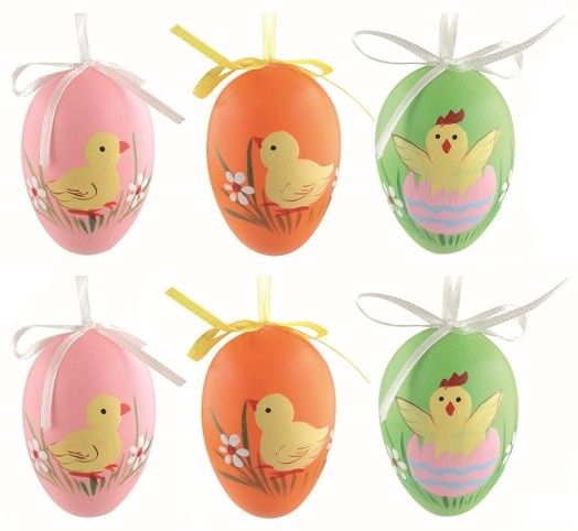 Velikonoční vejce plastová malovaná Kuřátka 6 cm na zavěšení, 6 ks v sáčku