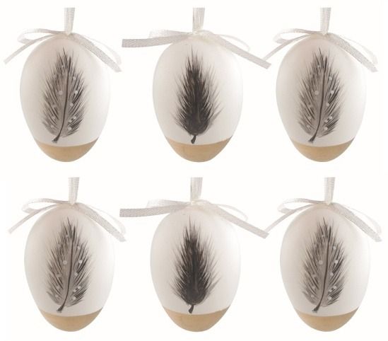 Velikonoční vejce plastová Pírka 6 cm na zavěšení, 6 ks v sáčku