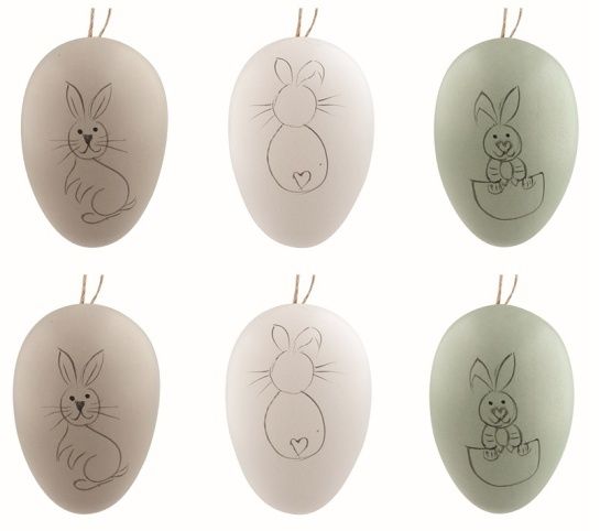 Velikonoční vejce plastová S konturou zajíce 6 cm na zavěšení, 6 ks v sáčku