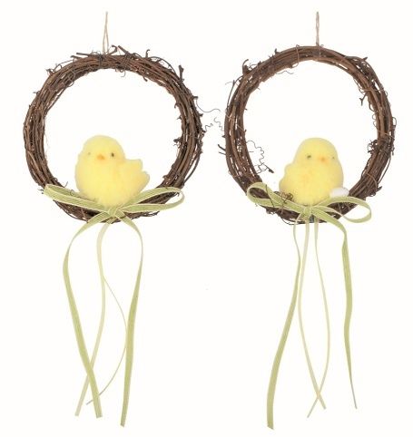 Velikonoční věnec Kuřátko s vajíčkem a mašlí 15 x 15 x 5,5 cm + stuha na zavěšení