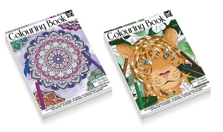 Velká kniha omalovánek – kniha má 72 stran se 144 růoznými obrázky. Dva různé druhy – mandala a mix obrázků. Velkost knihy 20,5×15,7cm.