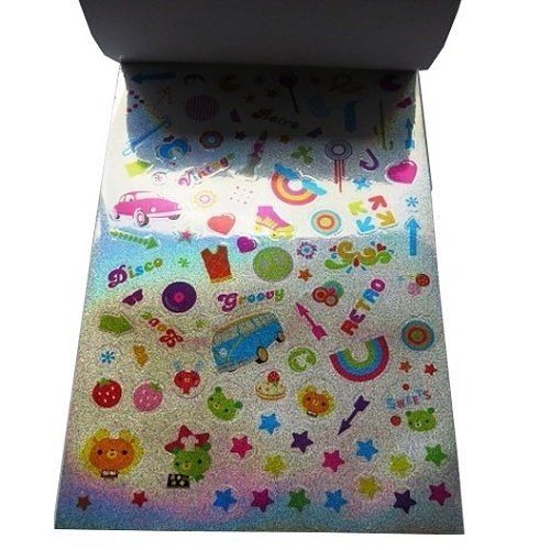 Velká kniha samolepek – obsahuje 9 archů různých samolepek – malé, velké smajlíky, duhy, hvězdičky, metalické, holografické, různě barevné. Samolepky jsou vyřezány na stránce pro snadné odlepení.
