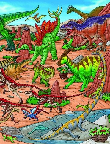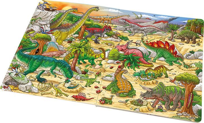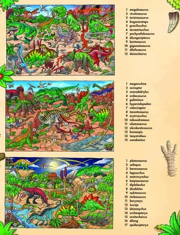 V pravěku to na zemi vypadalo úplně jinak než dnes. A hlavně tu nežili lidé! Svět byl královstvím veleještěrů zvaných dinosauři, kteří obývali všechna myslitelná prostředí. Někteří žili na souši, jiní pod vodní hladinou a teritoriem dalších byl zase vzdušný prostor. Jednotlivé druhy se proto od sebe hodně lišily. Tahle knížka vám představí pravěký svět dinosaurů v celé jeho kráse a rozmanitosti. Poznáte druhy, které létaly, plavaly, lezly, běhaly… Když se budete dobře dívat, odhalíte dokonce to, jak se jedni dinosauři bránili útokům druhých, čím se živili nebo jak přicházela na svět jejich mláďata. Někteří z ještěrů jsou vyobrazeni na každé stránce – vyzkoušejte svůj postřeh a hledejte je znovu a znovu na krásných barevných obrázcích plných roztodivných pravěkých tvorů! Na konci knihy pak najdete kompletní seznam názvů vyobrazených dinosaurů – naučte se je znát a staňte se odborníky přes tyto oblíbené pratvory!