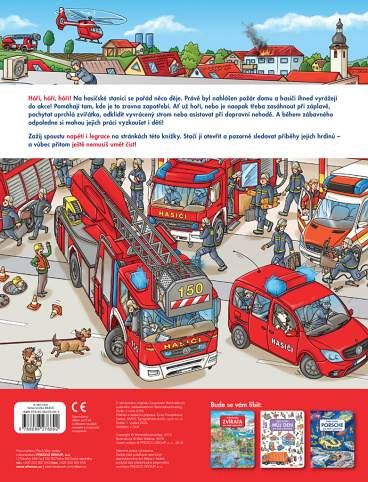 Rychle si navlékli výstroj, nasadili přilby a už se řítí se zapnutou houkačkou k hořícímu domu. Rychle připravit dlouhý hasičský žebřík a stříkačky a hasíme! Je třeba vyprostit z plamenů nešťastníky, kteří nestačili včas utéct před ohněm a zůstali uvězněni v domě. To je také práce hasičů: odvážně se vrhají do plamenů, aby před požárem zachránili všechno živé. Detailní ilustrace v další z řady velkých obrázkových knih seznámí malé čtenáře s rozmanitou prací hasiče i s každodenním životem na stanici. Stačí se jen ponořit do barevného světa obrázků a pozorně sledovat.