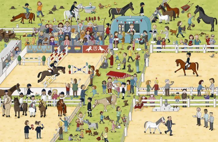 V téhle velké obrázkové knížce prožijete úžasný den mezi koni a poníky. Na velkoformátových ilustracích můžete tyto krásné a ušlechtilé tvory obdivovat. Nahlédnete do každodenního života na koňské farmě, vyrazíte na projížďku, budete fandit na dostizích nebo sledovat hřebce, klisny a hříbátka na pastvě. Poznáte, co všechno obnáší péče o tato zvířata, co mají ráda nebo při jakých činnostech mohou člověku pomáhat. Některé postavičky a zvířátka můžete hledat na každé dvojstránce znovu a znovu a sledovat jejich příběhy. Je to docela fuška, ale hlavně velká zábava!