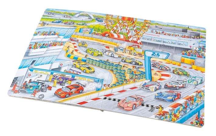 Ať se podíváš, kam se podíváš, všude se v automobilce Porsche děje něco vzrušujícího! Díky téhle velké obrázkové knížce můžeš pozorovat zaměstnance továrny přímo při plnění úkolů souvisejících s vývojem a výrobou těchto úžasných aut. Zúčastníš se také testování nového prototypu na zkušební trati v Lipsku nebo populárního vytrvalostního závodu 24 hodin Le Mans a v muzeu Porsche pak budeš obdivovat krásné historické vozy. Knížka přibližuje nejen čilý ruch ve výrobních závodech, na okruzích nebo v továrním muzeu značky Porsche, ale seznamuje také s řadou modelů těchto obdivovaných vozů, a dozajista proto potěší automobilové nadšence všech věkových kategorií!