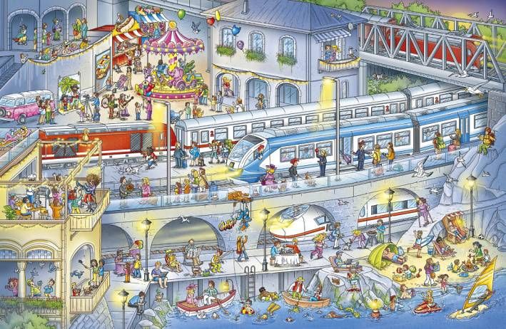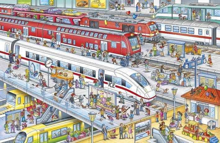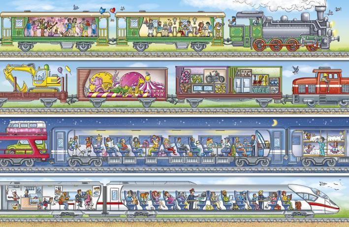 Tohle velkoformátové obrázkové leporelo ocení především fanoušci vlakové dopravy. Do světa lokomotiv, vagonů, kolejnic a nádraží se podívají velmi zblízka na úžasných detailních ilustracích. Seznámí se s těmi, kdo na železnici pracují, s cestujícími se vydají na fascinující výlet historickým vláčkem nebo nejmodernějším rychlíkem. Pojedou dnem i nocí, profrčí tunely i mosty. Poznají čilý ruch velkých nádraží i kouzlo malých venkovských stanic… A když se budou dobře dívat, objeví některé hrdiny na každém obrázku v knížce, a tak s nimi mohou prožívat jejich příběhy.