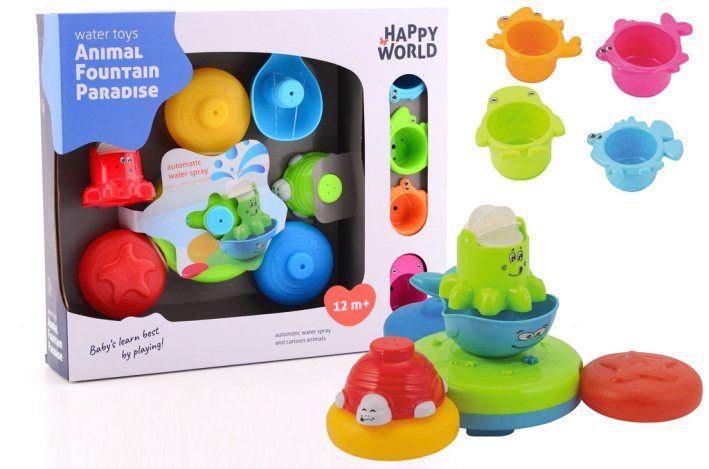 Velká sada hraček do vany – 6 zvířátek, vodní mlýnek a