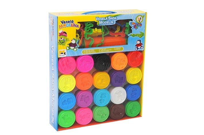 Skvělá velká sada modelín, která obsahuje 20 kelímků a spostu tvarovátek a vykrajovátek na tvoření.