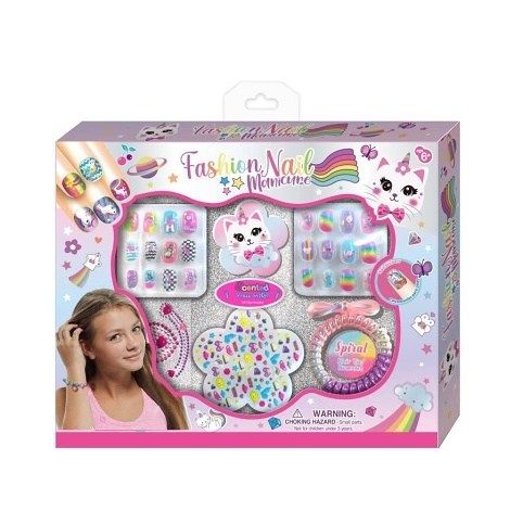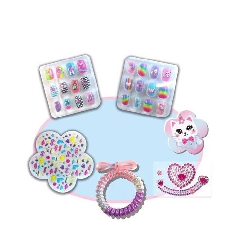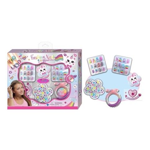 Velká sada s nehtovým studiem. V balení naleznete nalepovací barevné nehty, pilníček, ozdobné kamínky, spirálovou gumičku. Vhodné pro děti do 6ti let.
