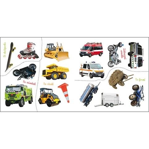 Naučná samolepková knížka pro nejmenší děti obsahuje 16 stran plných obrázků a prvních slov a 4 listy samolepek pro dolepení na správné místo.