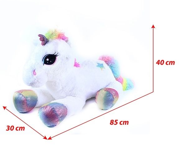 Nádherný bílý plyšový jednorožec Funkie ve velikosti 85 cm je vyroben z kvalitní jemné plyše. Tento plyšový kousek je ideálním dárkem pro malé i velké!