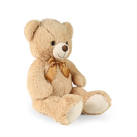 Plyšový medvěd by rozhodně neměl chybět v žádném dětském pokojíčku! Medvěd ve velikosti 78 cm je vyroben z kvalitní heboučké plyše, má světle hnědou barvu a krk mu zdobí hnědá saténová mašle. Tento plyšový kousek je ideálním dárkem pro malé i velké! Součástí je papírová visačka ve tvaru srdíčka, na kterou můžete napsat věnování. Vhodné pro děti od 0 let.