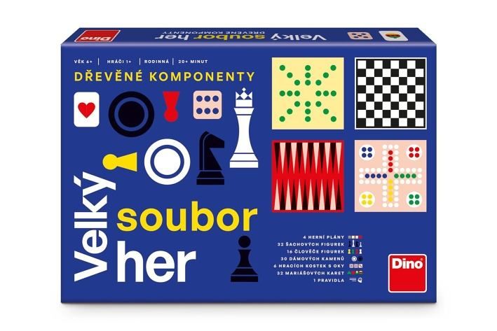 Velký soubor her s dřevěnými komponenty je kolekce 150 klasických společenských her, které zahrnují jak známé, tak i netradiční varianty. Tento rozsáhlý soubor klasických her by neměl chybět v žádné rodině.