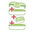 obě přihrádky i vnitřní svačinový box s víčkem lze použít také samostatně