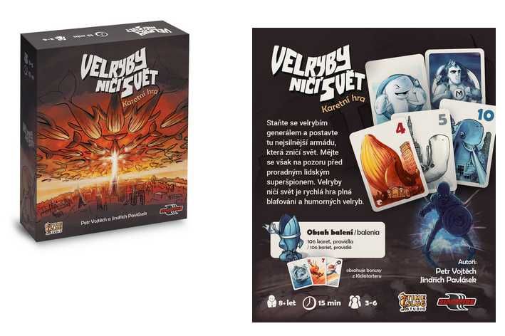 Ve hře Velryby ničí svět se dvě až čtyři velryby předhání v likvidaci měst. Jejich cíl je společný, ale jen jedna velryba může nést titul největšího ničitele hodného slávy Moby Dicka. Města jsou představována kartami čtyř barev. Velryby (hráči) s využitím taktiky i strategie získávají suroviny, přesouvají karty na herním plánu, a především rozsévají destrukci. Jádrem hratelnosti je hledání nejvýhodnějších kombinací, neboť štěstí při hodu kostkou o vítězi nerozhoduje.