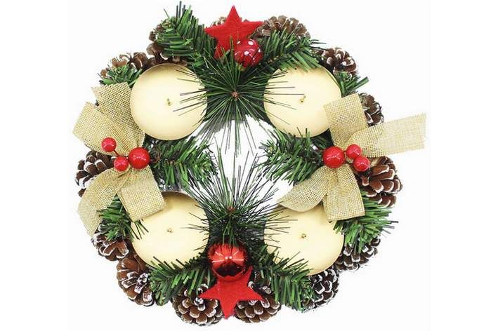 Věnec adventní šiškový s jutovou mašlí 22cm