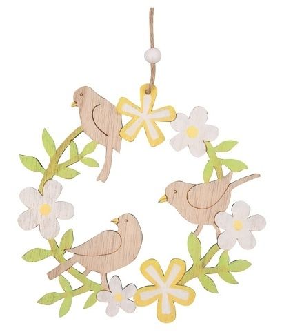 Věnec dřevěný s ptáčky na zavěšení 15 cm