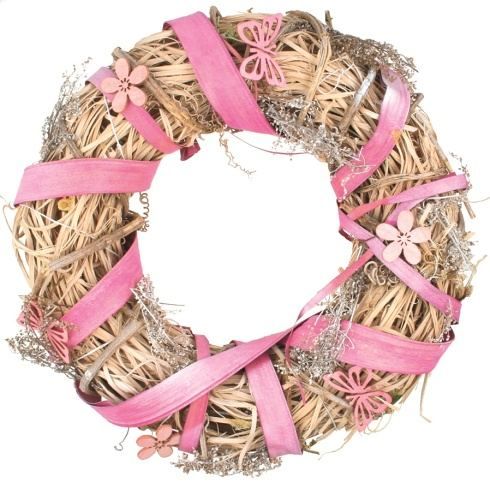 Věnec květinový s růžovou mašlí 25 cm