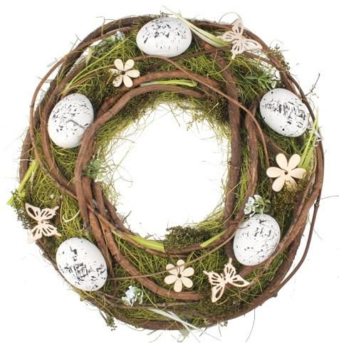 Věnec proutěný s vajíčky a motýlky 34 cm