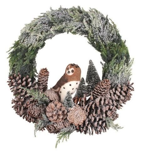 Věnec se sovou, o 40 x 8 cm + dekorace Tento stylový věnec se sovou je skvělým doplňkem pro vaši zimní nebo vánoční výzdobu. Věnec je ozdobený krásnou sovou a dalšími dekorativními prvky, které mu dodávají přírodní a kouzelný vzhled. Díky jeho designu se hodí na zavěšení na dveře nebo stěnu. Využití: Věnec se sovou je ideální zimní dekorace, která přitáhne pozornost a vnese do vašeho prostoru klidnou, přírodní atmosféru. Vlastnosti: průměr: 40 cmvýška: 8 cmideální pro zavěšeníTento věnec se sovou přinese do vašeho domova kouzlo přírody a zimní pohody, ideální pro vánoční svátky nebo zimní období.