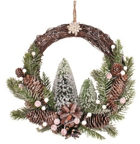 Věnec se stromky na zavěšení o 26 cm + dekorace