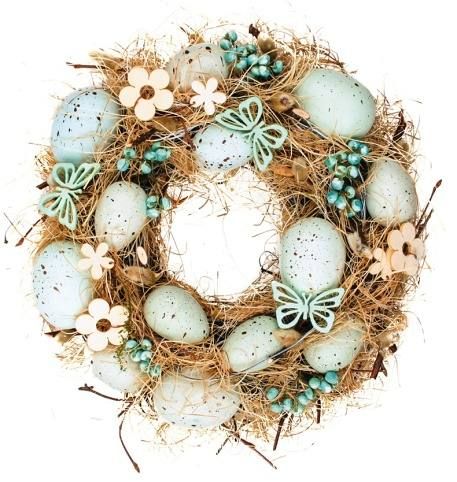 Věnec velikonoční proutěný, tyrkysové ozdoby 24 cm