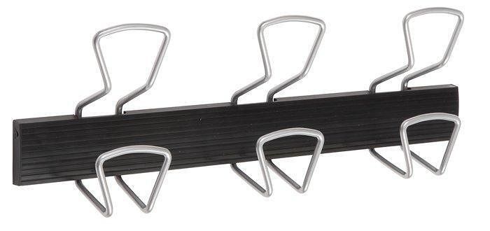 Věšák, na stěnu, kovový, 3 kovové háčky, ALBA, černý/stříbrný