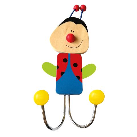 Veselá dekorace do každého dětského pokoje. Dřevěný věšák s motivem zvířátek - beruška.