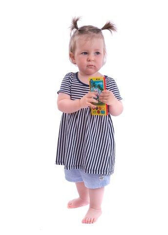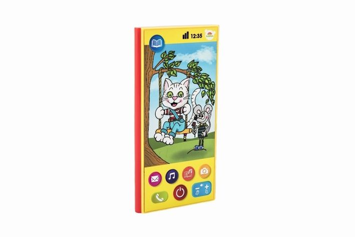 Dotykový mobil, který vypráví 2 pohádky, zpívá 4 písničky a naučí děti 6 říkanek. Děti si mohou poslechnout pohádky: O veliké řepě a Pohádku o Budce, zazpívat si písničky: Kočka leze dírou..., Mámo, táto v komoře je myš..., Houpy, houpy... a Utíkej káčo.... a naučit se říkanky: Vařila myšička kašičku..., Hrálo si koťátko..., Běží myška po světnici..., Dupy, dupy, klapy, klapy..., Naše kočka strakatá..., Včera večer při měsíčku... Na mobilu jsou tlačítka se zvukem vyzvánění, příchozí zprávy a fotoaparátu. Mobil také obsahuje tlačítko s ovládáním hlasitosti, přikládá-li dítě mobil k uchu, ztlumte hlasitost pomocí tlačítka ovládání hlasitosti "-", poslouchá-li mobil ze vzdálenosti, můžete zvýšit hlasitost pomocí tlačítka ovládání hlasitosti "+". Mobil je na 3 baterie typu AAA, které jsou součástí výrobku.