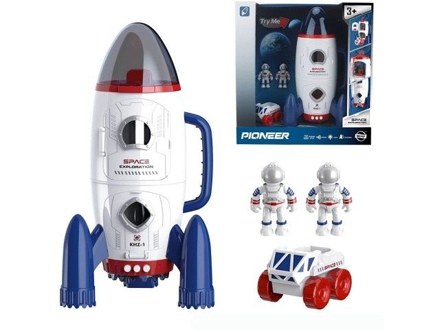 Vesmírná raketa, 29,1 x 15,8 x 15 s příslušenstvím, na baterie vás přenese do nekonečného světa vesmíru. Hračka je určena pro děti 3+. Rozměr hračky je 29,1 x 15,8 x 15 cm. Součástí balení jsou dva kosmonauti. Materiál hračky je plast. Balení hračky je box. Produkt je určený pro kluky. Ke zprovoznění produktu jsou potřeba baterie AG13. Baterie jsou součástí balení.