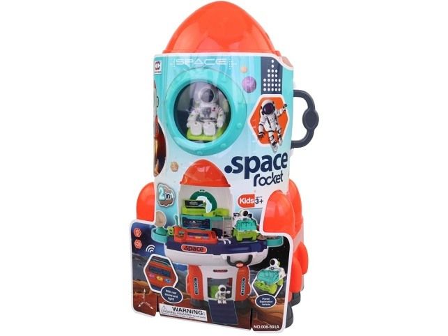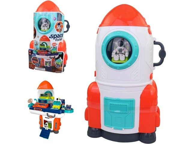 Vesmírná raketa, stolek s příslušenstvím, na baterie, 49 x 19,5 x 53 cm. Pro malé vesmírné objevitele je raketa ideální volbou, prorože má vše potřebné v jednom balení. Hračka je určena pro děti 3+. Rozměr hračky je 49 x 19,5 x 53 cm. Materiál hračky je plast. Ke zprovoznění produktu jsou potřeba 2 x AA baterie nejsou součástí balení. Balení hračky je box. Produkt je určený pro kluky.