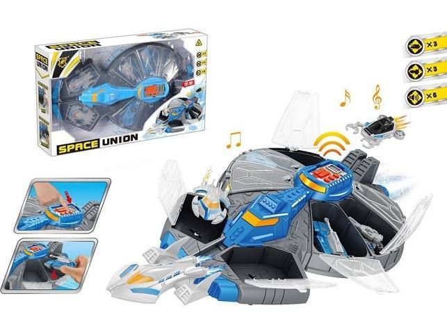 Vesmírná stanice na baterie obsahuje vše, co potřebuje neohrožený cestovatel k objevování nových světů ve vzdáleném vesmíru. Dokovací základnu a průzkumné moduly, ať už letájící nebo pohybující se po povrchu nově objevené planety. Zvukové doplňky. Napájení: baterie 3 x LR41 (knoflíkové). Rozměr boxu: 13 x 38,5 x 22,5 cm. Vhodné pro děti od 3 let.
