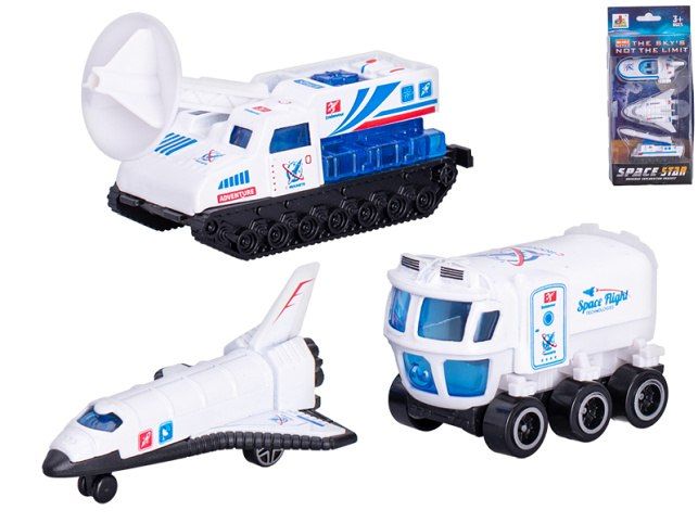 Vesmírná vozidla 5,5-8cm kov volný chod 2druhy 3ks v krabičce